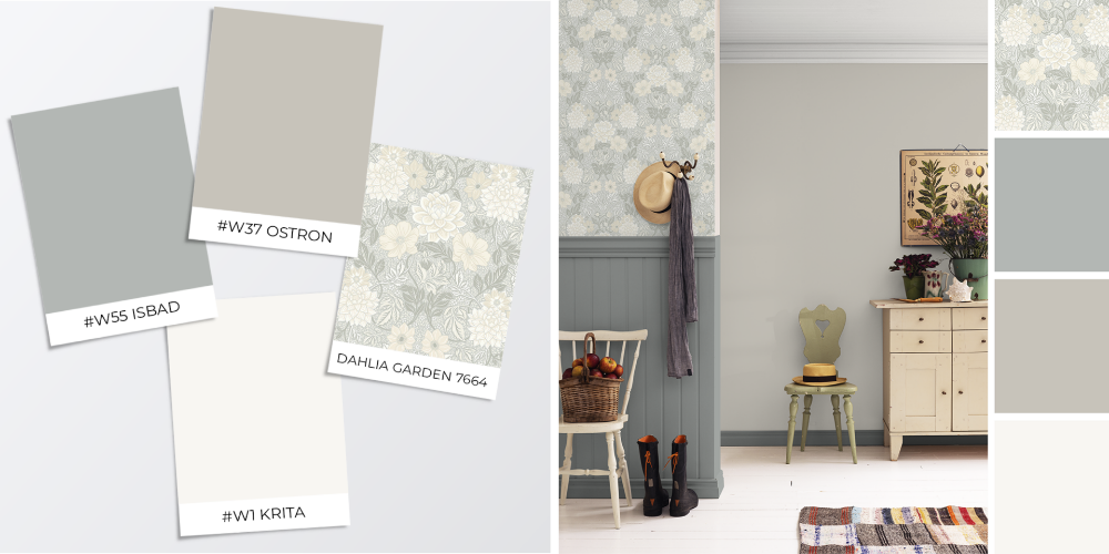 Det är årets färgsnackis, vi säljer inte färg på burk. Vi säljer färdiga färgkombinationer (som visserligen kommer i burkar). Och vet du, du kanske inte ens vet vilken stil du vill ha, då kan du kolla in våra färdiga färgsättningar på rum. Eller varför inte kolla alla svala, varma eller neutrala kombinationer?