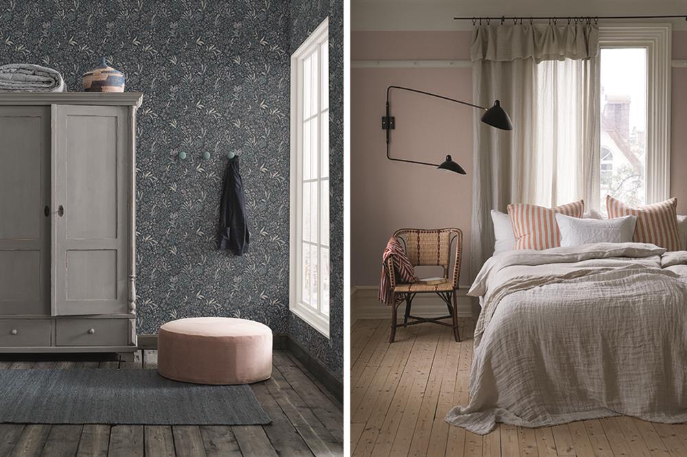 Vill du ha ett mysigt tapetserat sovrum, utan att behöva tänka så mycket? Alla är inte superintresserade av inredning – och det är helt okej. Två alltid populära val av tapet till sovrummet är en blå tapet eller en textiltapet.