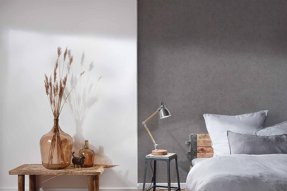 Här ser du några alternativ på hur man kan matcha en grå sovrumstapet på olika sätt.
